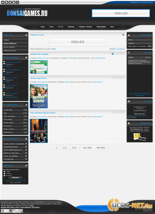 Отличный голубо-бело-чёрный шаблон для юкоз. Хорошо подойдёт для порталов, варезов и т.д
